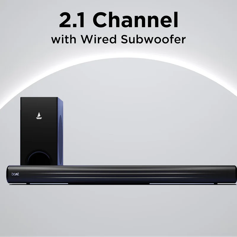 Bluetooth Soundbar with Wired Subwoofer, 100W RMS Sound, 2.1 channel, Multiple EQ Modes, Bluetooth v5.3, USB, AUX, HDMI (ARC)