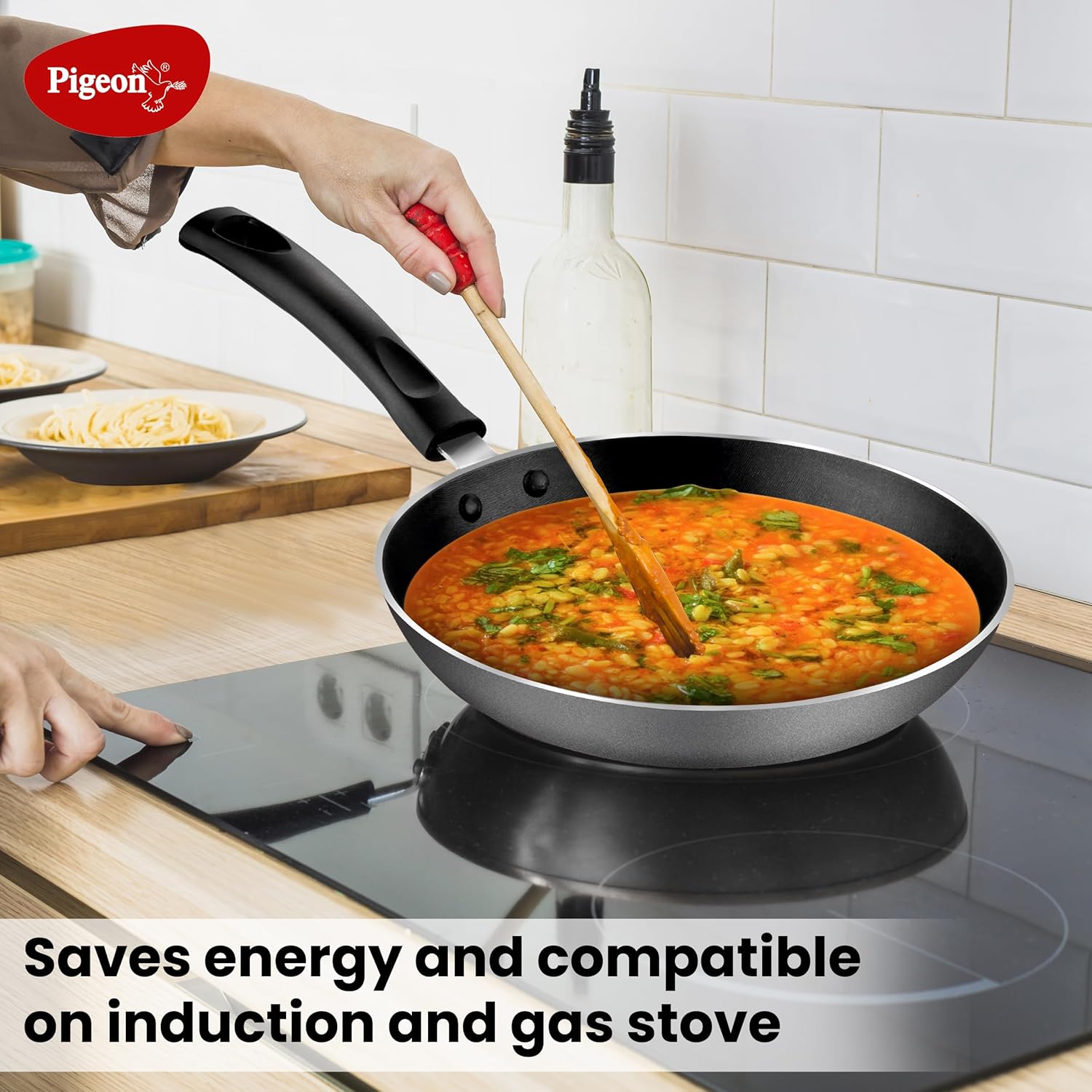 - Made up of Hard anodised aluminium material and has induciton base. Makes it suitables for Induction, gas stove, halogen and ceramic cooking.