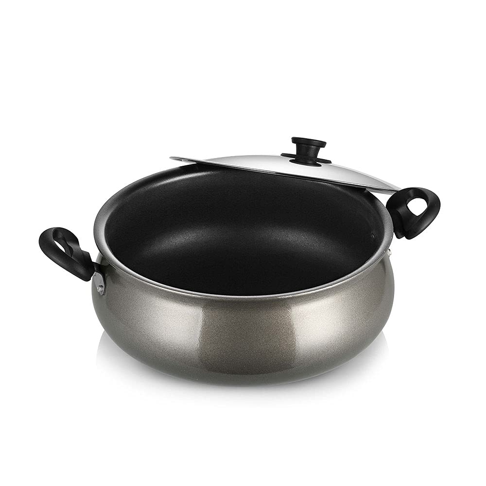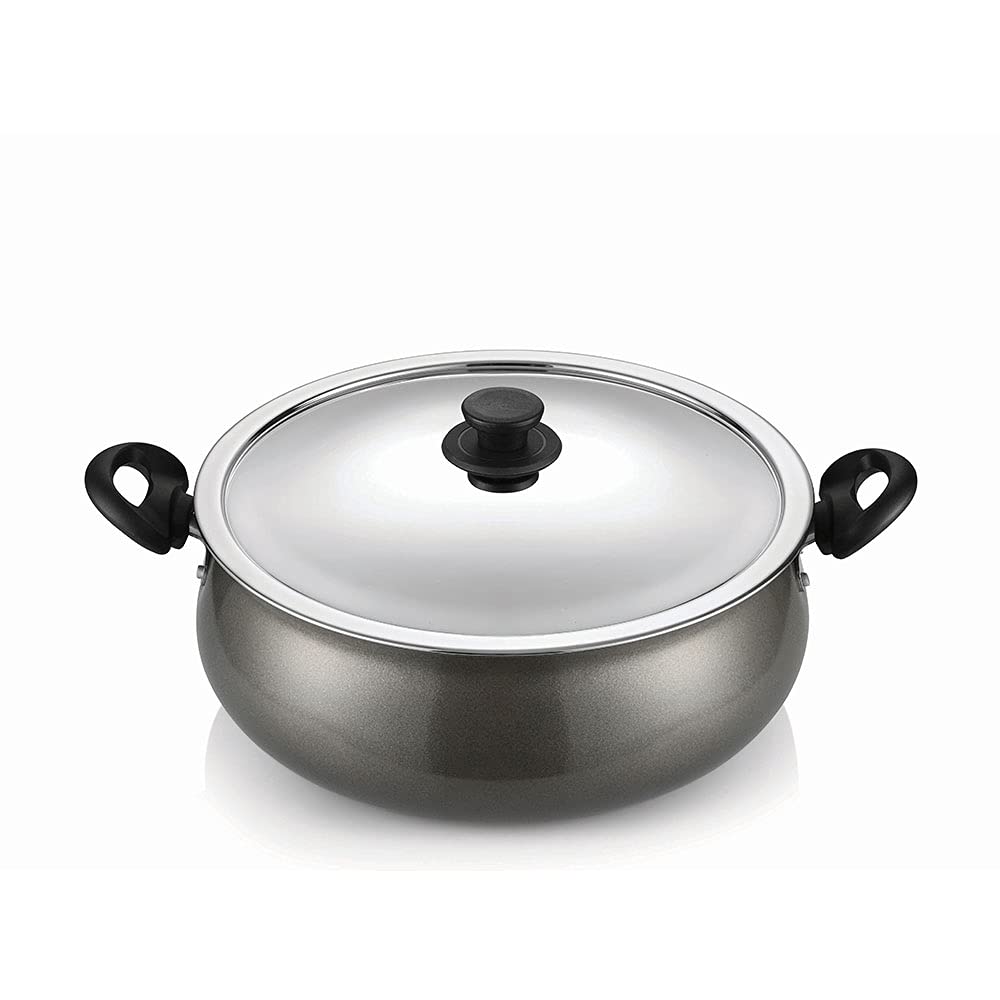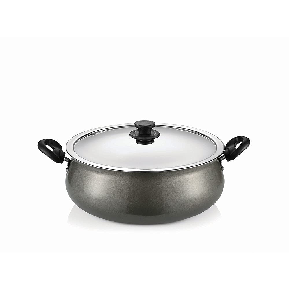 Pigeon by Stovekraft Aluminium Non-Stick Gravy Pot with Lid, 6 Litres, Silver/Black